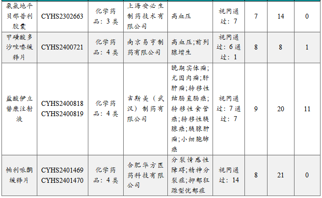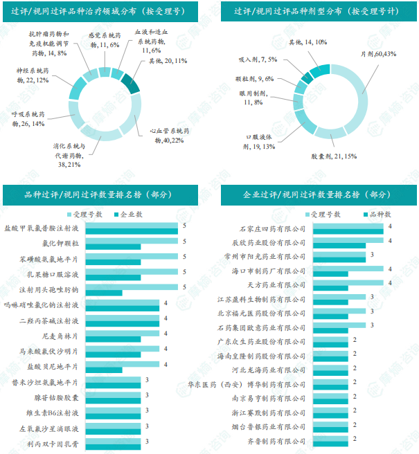 本周过评/视同过评品种主要为心血管系统药物;过评/视同过评产品剂型主要为片剂;本周盐酸甲氧氯普胺注射液、氯化钾颗粒和苯磺酸氨氯地平片等多个品种过评/视同过评受理号数量多达5个,本周盐酸甲氧氯普胺注射液过评/视同过评企业最多为5家;本周石家庄四药有限公司企业过评/视同过评品种数最多达4种,本周过评/视同过评企业共包括石家庄四药有限公司、辰欣药业股份有限公司和常州市阳光药业有限公司等147家企业。