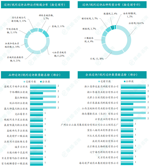 本周过评/视同过评品种主要为心血管系统药物;过评/视同过评产品剂型主要为注射剂;本周盐酸尼卡地平注射液等多个品种过评/视同过评受理号数量多达2个,同时盐酸尼卡地平注射液也是本周过评/视同过评企业最多的品种为2家;本周浙江易泽达医药科技有限公司、浙江华海药业股份有限公司和天津力生制药股份有限公司企业过评/视同过评品种数最多达2种,本周过评/视同过评企业共包括浙江易泽达医药科技有限公司、浙江华海药业股份有限公司和天津力生制药股份有限公司等37家企业。
