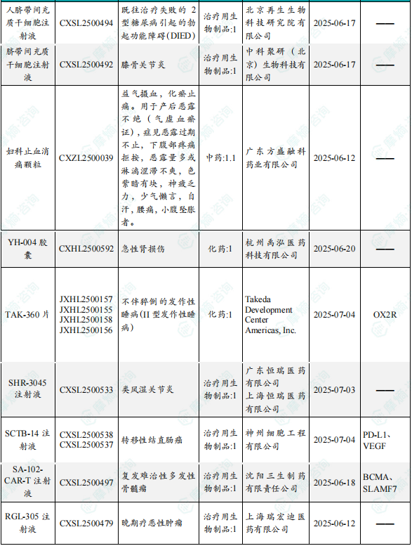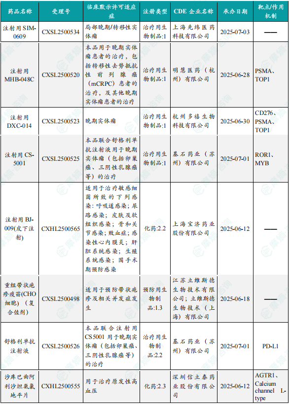 备注:(1)此处未包括补充申请之情形;(2)此处所列创新药/改良型新药,主要是指CDE受理批准的1类、2类、5.1类以及生物制品3.1类和3.2类。(3)更多获批临床信息及研发进展详情及相关靶点全局分析等,可通过摩熵中国药品审评数据库获取并下载EXCEL表格。