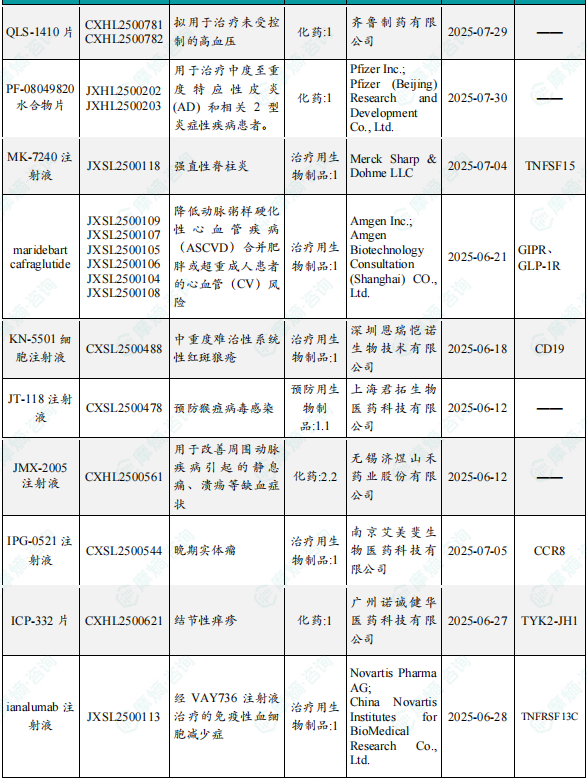 9月1日,CDE官网公示:齐鲁制药的QLS-1410片获得临床试验默示许可,拟用于治疗未受控制的高血压。公开资料显示,QLS-1410是一款CYP11B2抑制剂。齐鲁制药目前已经登记了该产品在成年健康和轻度原发性高血压参与者中评价QLS1410片单次和多次给药剂量递增的I期临床研究。