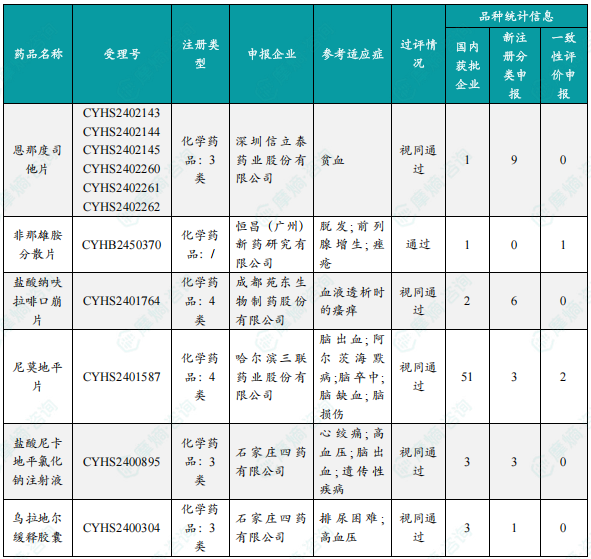 本周过评/视同过评品种主要为心血管系统药物;过评/视同过评产品剂型主要为注射剂和片剂;本周二十碳五烯酸乙酯软胶囊和恩那度司他片过评/视同过评受理号数量最多达6个,本周二羟丙茶碱注射液、二十碳五烯酸乙酯软胶囊和吗啉硝唑氯化钠注射液品种过评/视同过评企业最多达3家;本周石家庄四药有限公司过评/视同过评品种数最多达11种,本周过评/视同过评企业共包括石家庄四药有限公司、海南葫芦娃药业集团股份有限公司、浙江赛默制药有限公司等151家企业。