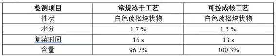 可控成核工艺形成的冰晶细小均一,未对产品的空间构型产生破坏性影响,对产品的生物活性起到了保护作用。
