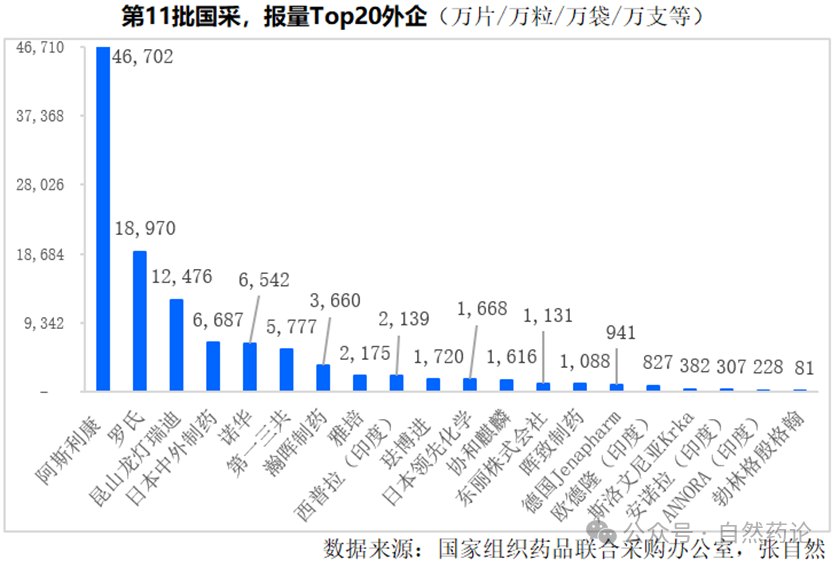 大战一触即发,下图为十一批国采报量分析(由未指定厂牌量由高到低)