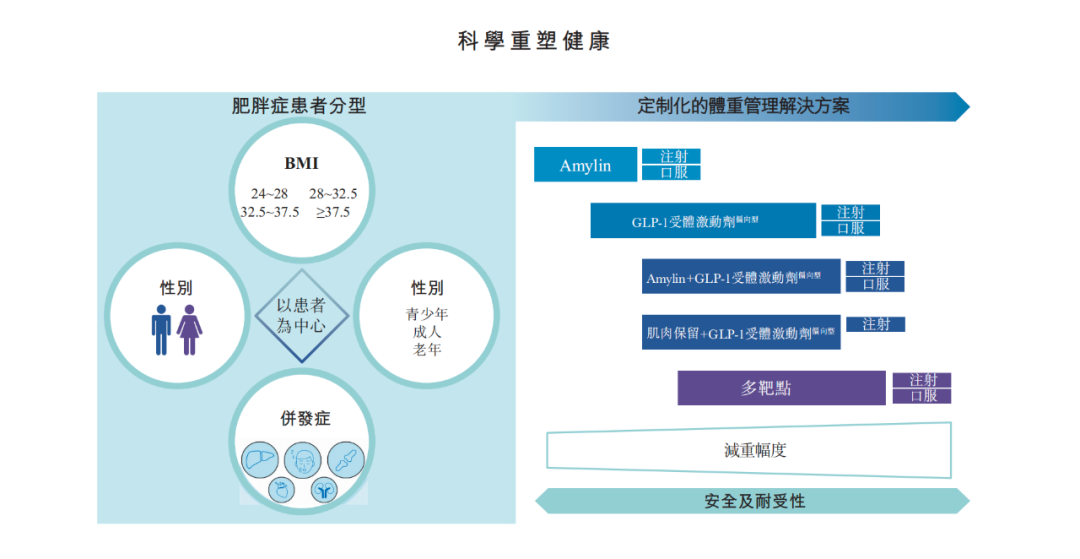 从GLP-1单靶点延伸到Amylin激动剂,从成人适应症扩展至青少年群体,先为达生物已逐步构建出一个涵盖不同BMI阶段、不同年龄层、不同剂型需求的“体重管理全方位解决方案”。