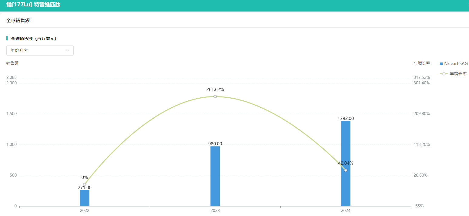 Pluvicto/镥[177Lu]特昔维匹肽全球销售额