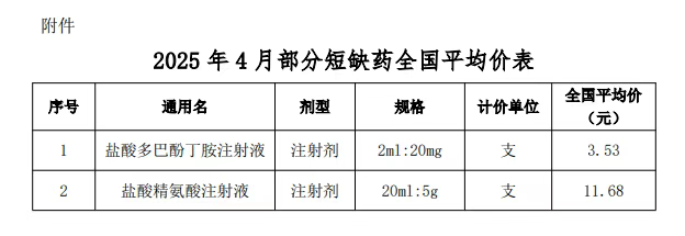 值得注意的是,这两款药均属于短缺药。同日,阳光平台还同步共布了这两款短缺药的4月全国平均价,每支分别为 3.53 元、11.68 元。