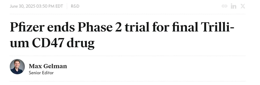 TTI-622是2021年辉瑞斥资22.6亿美元收购Trillium公司而获得的第2个CD47项目,另一个是TTI-621,此前辉瑞已经停止TTI-621的开发,这意味着辉瑞收购而来的两条CD47路线全部按下暂停键。