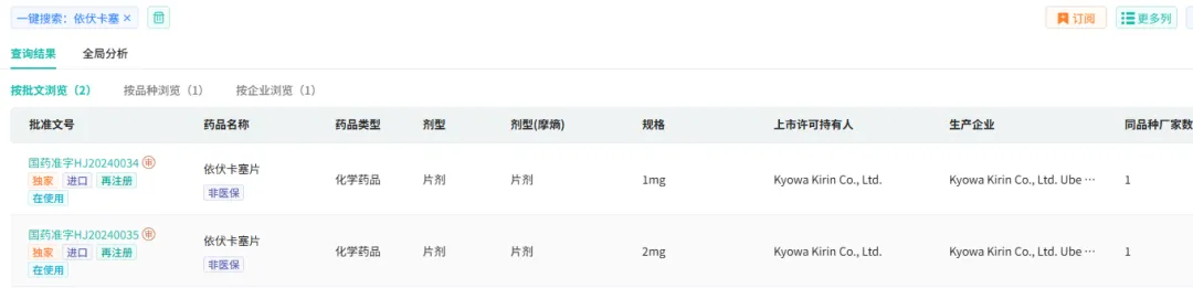 依伏卡塞原研厂家为协和麒麟株式会社,最早于2018年获得日本PMDA批准,2024年6月被NMPA批准进口,并于2025年3月由中日友好医院开出中国市场首张处方。