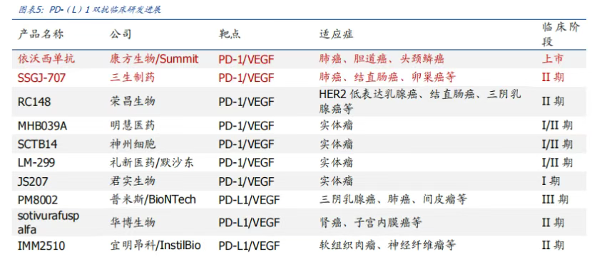 落足血液瘤。且同时中国药企较早布局PD-(L)1双抗,目前2款 PD-(L)1 商业化品种均来自中国,适应症为实体瘤,中国药企借双抗技术实现“弯道超车”。