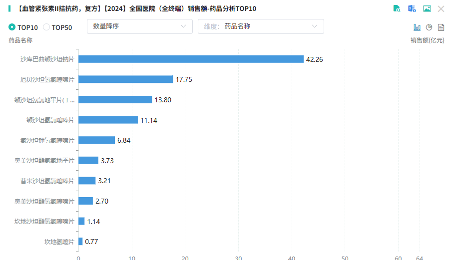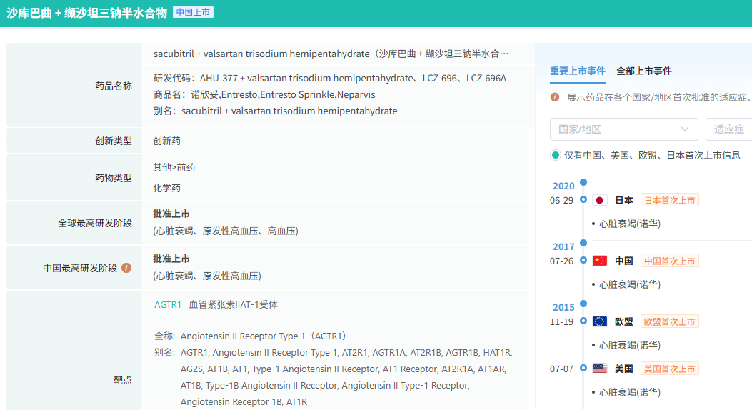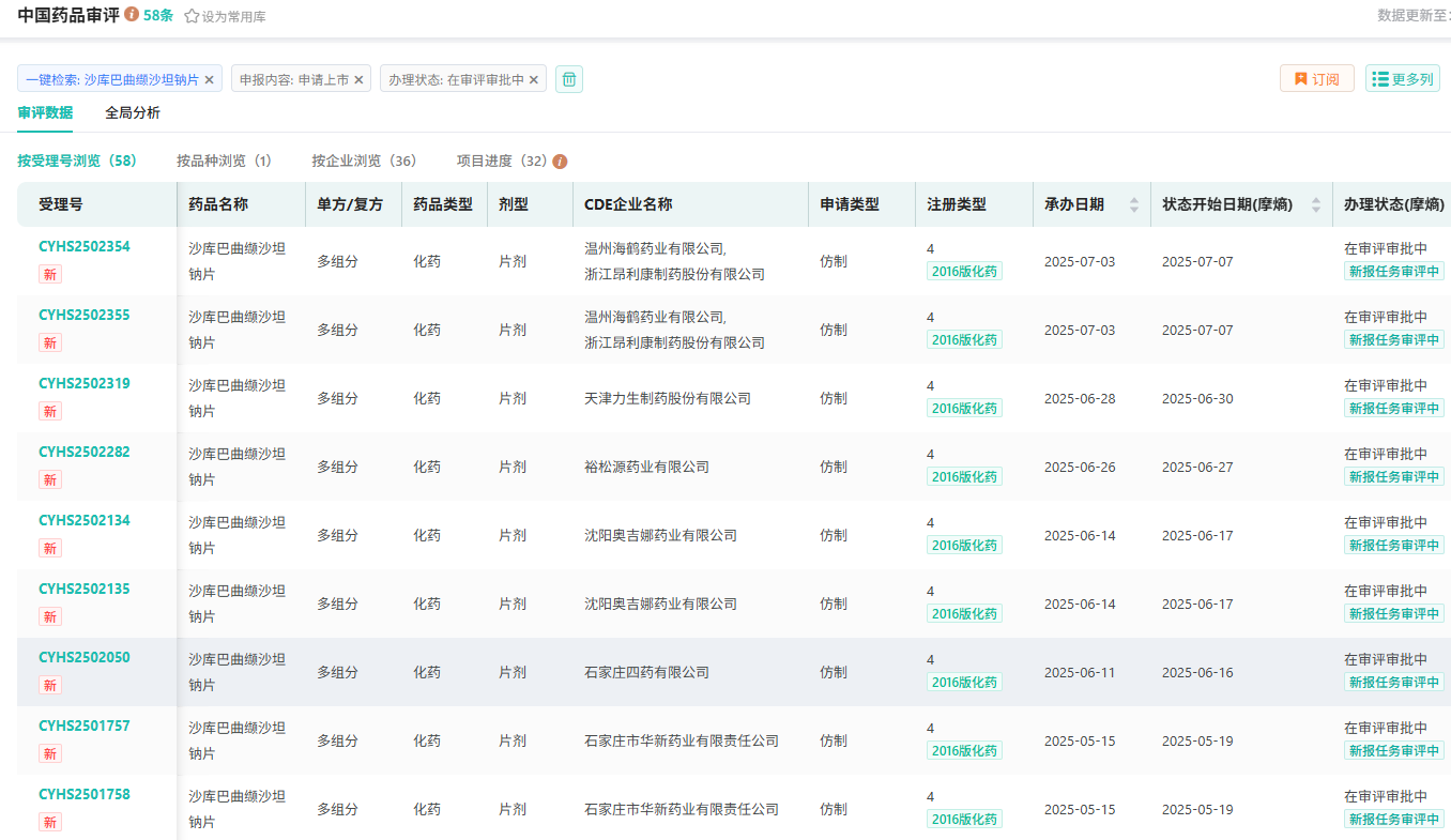 作为该市场的TOP1产品,沙库巴曲缬沙坦钠片吸引多家本土药企争相布局。