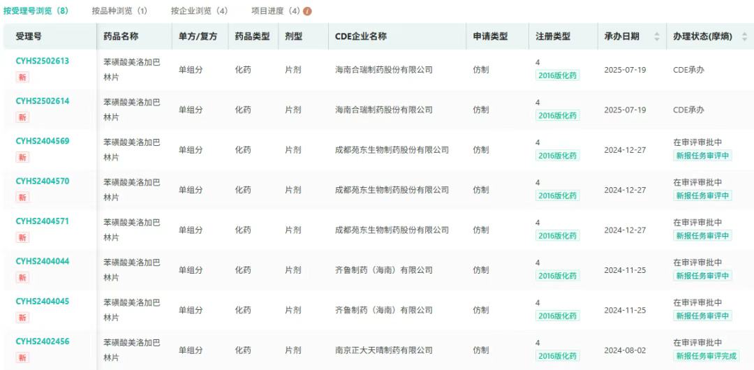 7月19日,CDE官网显示,海南合瑞制药股份有限公司申报的4类化学仿制药苯磺酸美洛加巴林片的上市申请已获受理。合瑞制药由此正式加入该品种的首仿争夺战。