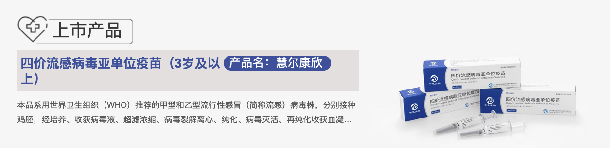 中慧生物的四价流感病毒亚单位疫苗是传统病毒裂解疫苗的重大技术升级,提供了高抗原纯度及低不良反应风险的产品,于2023年5月获国家药监局批准用于三岁及以上人群,是目前在中国获批的首款且唯一一款四价流感病毒亚单位疫苗。