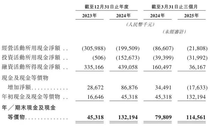 2023年、2024年和2025年第一季度,中慧生物营收分别为0.52亿、2.60亿和41.3万元,相应的研发开支分别为2.83亿、2.06和0.47亿元,净亏损分别为4.25亿、2.59亿和0.87亿元人民币。