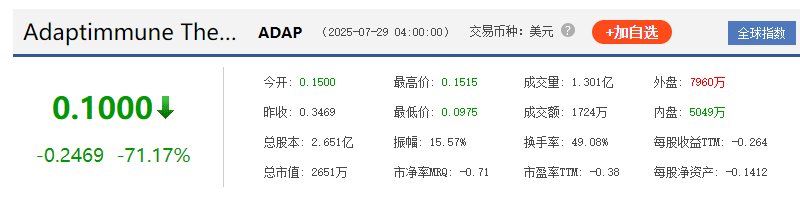2025年7月28日,Adaptimmune Therapeutics(纳斯达克:ADAP)宣布,已与美国 US WorldMeds 达成最终协议,将出售TECELRA、Lete-Cel、Afami-Cel及 Uza-Cel 4款细胞疗法。预计交易将在本周内完成。