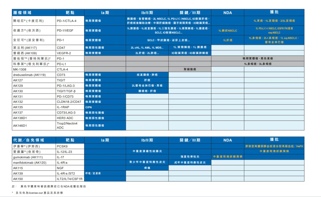 报告期内,公司其他肿瘤药物也取得了多项重要里程碑发展:公司自研新一代CD47单抗莱法利单抗(AK117)目前已与卡度尼利和派安普利单抗等药物开展了多个肿瘤领域的临床研究,包括2个实体瘤的III期临床研究,莱法利单抗在血液瘤领域的全球临床开发也在高效开展;公司自研肿瘤新药普络西单抗(VEGFR-2)也已联合卡度尼利等药物开展了多项临床研究,包括正在筹备的或已经开展的III期临床研究。