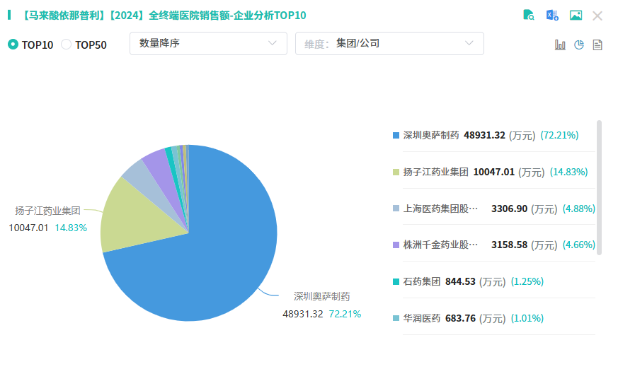 马来酸依那普利片剂是面向成人的标准剂型,而口服溶液是专为特殊人群设计的改良剂型。两者含有相同的活性成分,均用于治疗各期原发性高血压,肾血管性高血压,各级心力衰竭,预防症状性心衰,预防左心室功能不全患者冠状动脉缺血事件。据摩熵医药数据库显示,马来酸依那普利相关剂型品种在2024年全终端院内市场的销售总额超6亿元。