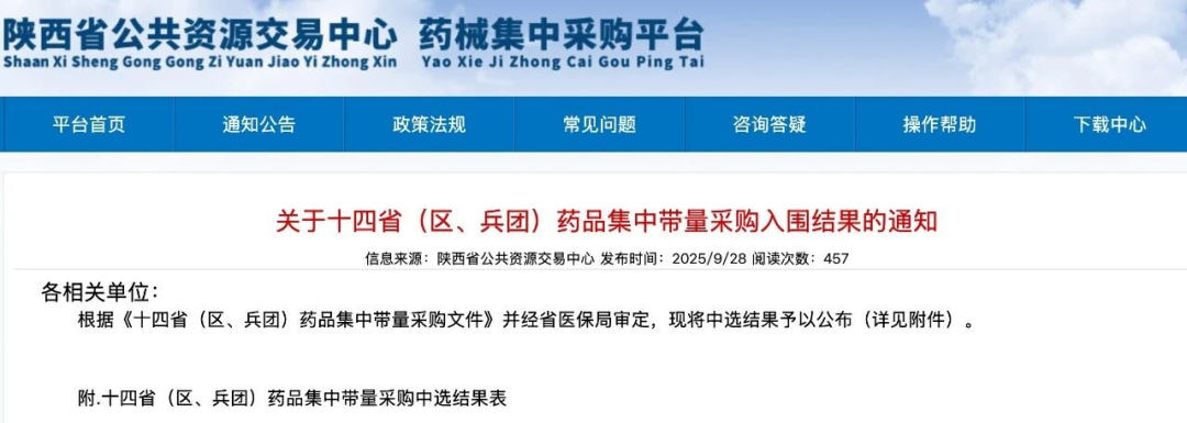 9月28日,陕西发布《关于十四省(区、兵团)药品集中带量采购入围结果的通知》,118家企业的217个产品成功中选,为医药市场带来新变化。